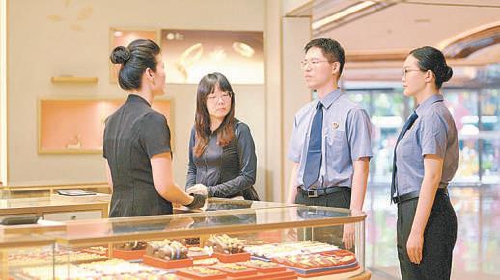 2024年7月,上海市黄浦区检察院检察官与金店员工交流反洗钱法律问题。
