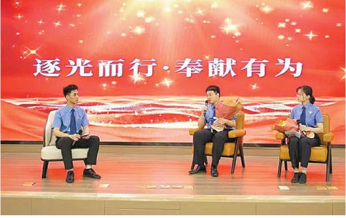 2025年5月,徐梓昊(中)、郭程程(右)参加宣讲活动。