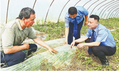 近日,江苏省镇江市丹徒区检察院聚焦农产品知识产权保护、农业生产资料采购维权等内容,举办“田间地头法律讲堂”,为农户提供法律服务。图为公益诉讼检察部门干警向种植户讲解废弃塑膜处置方法。