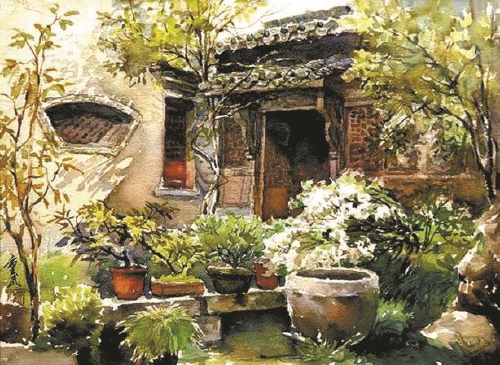 满庭芳草 曾闻水彩作品