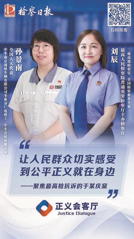 近日,于某庆案承办检察官、最高检普通犯罪检察厅主办检察官刘辰,全国人大代表孙景南做客正义会客厅,讲述案件背后的故事,分享观摩庭审的感受。