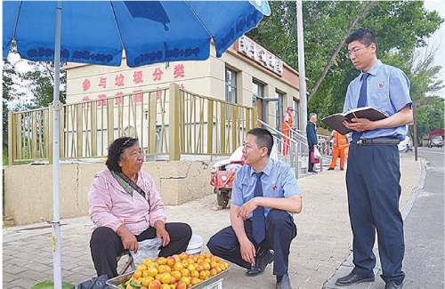 图为检察官日前开展“回头看”,向乌素图杏种植户、销售者了解情况。