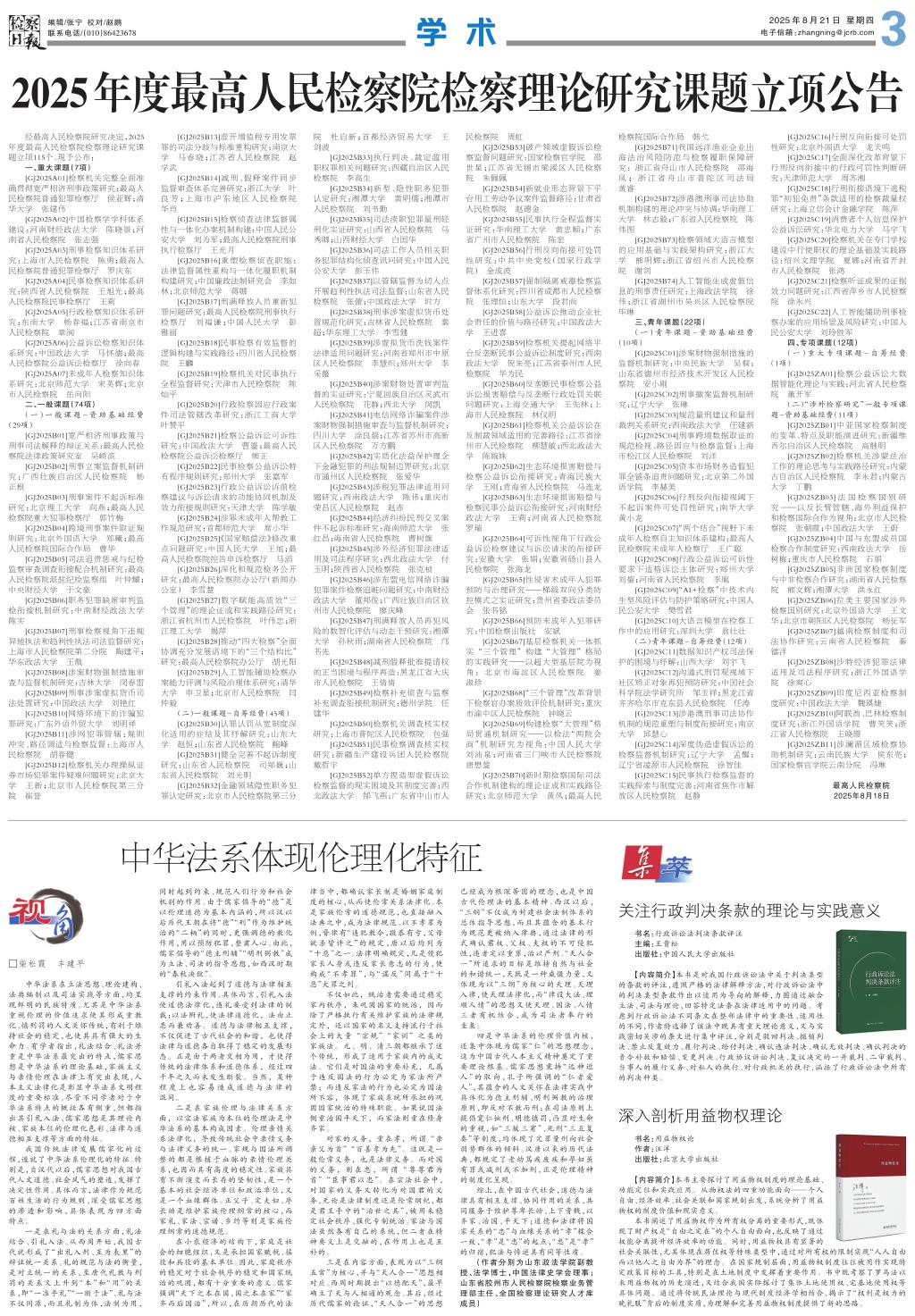 2025年度最高人民检察院检察理论研究课题立项公告