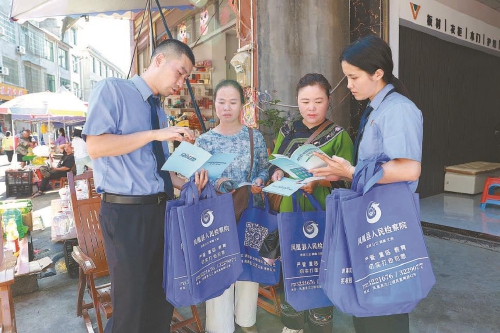 “恋爱应该甜蜜蜜,法律更得要注意!”“未知链接莫点击、索要验证码要警惕!”农历七月初七,是我国的传统节日七夕节。在这个浪漫的节日,肯定少不了鲜花与烛光晚餐,但是想要恋爱甜蜜和进退有度,法律知识是必不可少的。近日,湖南省凤凰县检察院干警走上街头,用汉苗双语向赶集的群众开展普法宣传,将法律知识送到苗家村寨。