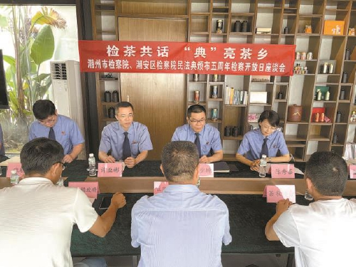 2025年5月20日,潮安区检察院联合潮州市检察院在潮安区凤凰镇茶文化博物馆举办主题为“检茶共话,‘典’亮茶乡”的检察开放日暨茶产业保护座谈会。