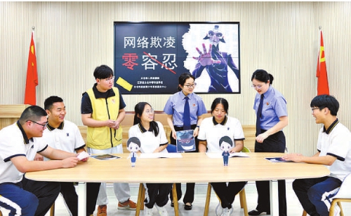 本报讯(记者卢志坚 通讯员吴玉洁)一则“校园表白墙”上的流言蜚语,最终演变成恶劣的网络欺凌事件……近日,江苏省太仓中等专业学校“双元制”学生们在法治副校长和司法社工的带领下,在法治剧本杀游戏中沉浸式上了一节专题法治课。这是太仓市检察院为“双元制”学生“量身定制”法治课的生动写照。