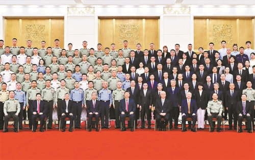 17日上午,人民大会堂北大厅气氛热烈。10时许,习近平等来到这里,全场响起热烈掌声。习近平等同大家亲切握手,并合影留念。