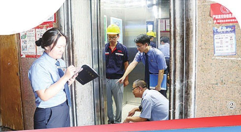 图②:2025年6月18日,浙江省义乌市检察院检察官与市场监管部门工作人员一起,就电梯安全问题整改情况进行“回头看”。