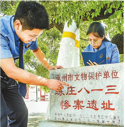图②:近日,河北省涿州市检察院干警到辖区练庄八一三惨案遗址,围绕遗址现状和日常管理机制等开展调查。 本报记者赵立谦 通讯员王菲 刘永新摄