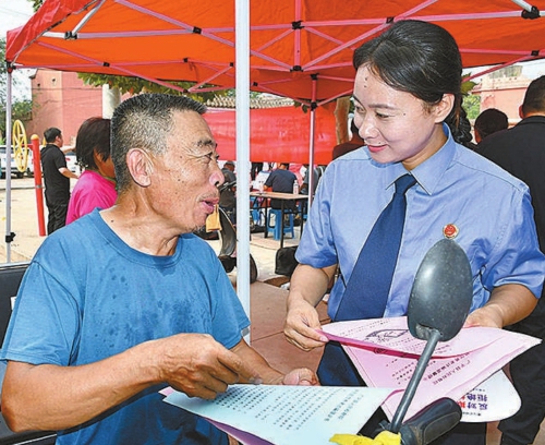 近日,河北省广平县检察院组织检察官走进辖区十里铺镇金安村,开展防范养老诈骗法治宣传活动。检察官结合一个个真实案例,剖析犯罪分子的惯用手法和作案方式,深入浅出地介绍“健康养生型”“投资理财型”等养老诈骗常见类型,提醒老年居民遇事多与子女商量,别轻易向陌生人汇款,守护好自己的“钱袋子”。“看了你们的宣传册,我算知道了,以后碰到说可以免费领礼品,最后让你掏钱买保健品、投资养老项目的,十有八九都是骗子。”活动现场,一位老人跟检察官总结他的学习心得。