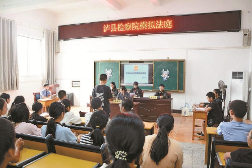 近日,四川省泸县检察院“纳爱·萱草花”未检团队走进该县玄滩镇学校开展法治宣传。图为在检察官引导下,同学们表演情景剧《失控的“道歉”》,再现一起校园欺凌案的庭审现场。活动中,检察官担任“法治辅导员”,针对庭审中的法律问题进行现场教学,将抽象的法条转化为同学们能理解的公平和正义。