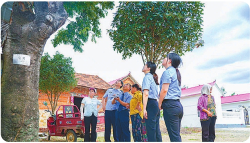 信阳市平桥区检察院公益诉讼检察官排查古树名木生存隐患。