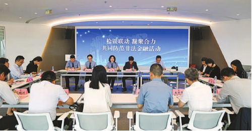 在上海陆家嘴金融检察综合履职基地,浦东新区检察院联合上海市银行同业公会共同举办“检银联动 凝聚合力 共同防范非法金融活动”系列交流研讨。