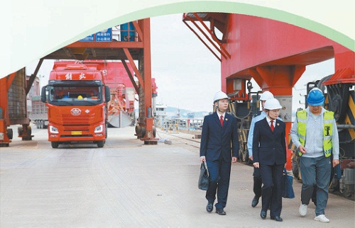 10月13日,办案检察官到长江沿岸卸货码头走访相关企业、开展普法宣传,增强长江物流领域企业的防范、监管意识。 邵恒媛摄
