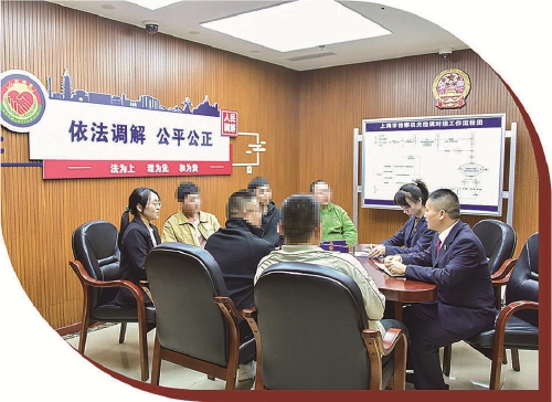 2024年10月,公开听证会后,上海市松江区检察院检察官与人民调解员邀请被害人代表与公司代表开展调解工作。