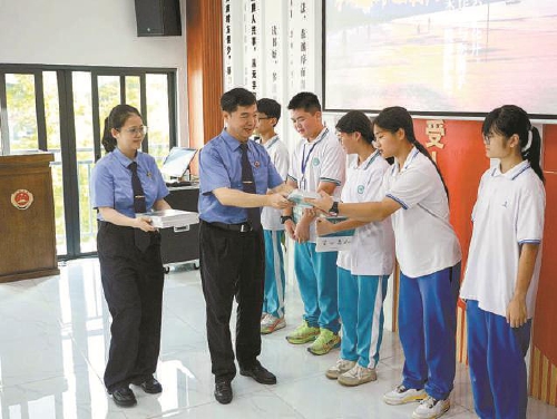 深化队伍建设,着力提升未检工作能力。该院发挥院领导“领头雁”作用,检察长带领30名检察人员担任中小学校法治副校长,年均开展法治进校园等活动120余场。该院认真落实“谁执法谁普法”责任制,利用特殊时间节点,开展检察开放日、法治进乡村等专题法治教育,增强未成年人及其监护人法治意识。