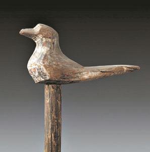 与《王杖十简》一同出土的,还有一根长约2米的彩绘木杖(现存于甘肃省博物馆),杖杆粗细均匀,鸠鸟横卧杖端,口含食粒。这是一件融合了礼制与法律的独特信物,也是国家权力的延伸。其形制有严格规定,“长九尺,端以鸠鸟为饰”。鸠鸟寓意“不噎”,寄托了对老人健康长寿的祝福,同时“鸠”通“久”,蕴含尊荣长久之意。更重要的是,简文中明确规定,王杖“比于节”,即其威严等同于天子符节,百姓“望见之”须心生敬意。木简中更有“王杖不鲜明,得更缮治之”的表述,以确保其作为法律信物的尊严永不褪色。王杖制度把对老年人的保护,用法律的形式固定了下来。
