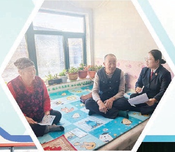 河北省沽源县检察院检察官到村民家中进行普法宣传,检察官坐上炕头为村民讲解宪法知识。