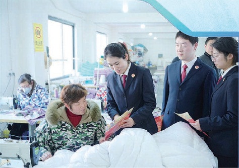 河南省社旗县检察院检察官前往该县大冯营镇艾草产业园,向职工宣传保障工人权益法律法规。