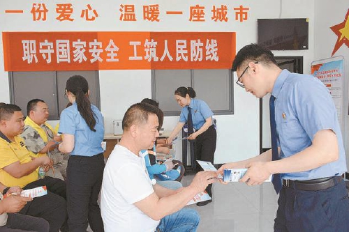 2025年4月24日,天门市检察院检察官向新就业形态劳动者、农民工普法。
