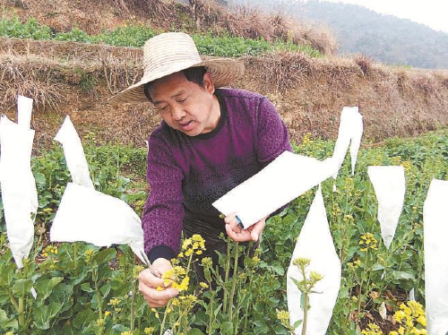 冬日,湖南省临澧县的田野里仍然是一派油菜生产的繁忙景象,全国人大代表、湖南省临澧县四新岗镇油菜种植大户沈昌健正和村民们一起种植刚培育出来的油菜苗。“这是不同的油菜品种,有优质种,也有普通种,将不同的品种放在同样的环境下生长,成熟后再将油菜籽中的成分、出油率等进行对比,再经过一系列杂交,就能培育出更加优质的油菜种子。”沈昌健一边和记者交流着,一边在笔记本上记录着种植情况。