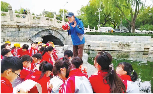 在什刹海小学的课堂上,当传承人讲述起万宁桥的故事时,孩子们眼中充满了好奇与向往。学校顺势组织了一场特别的“寻迹”之旅,非遗传承人带着孩子们走向故事发生的地方——那座被誉为“中轴线上第一桥”的万宁桥。