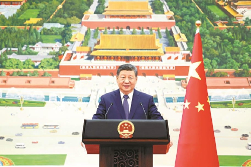 习近平指出,今天的世界,百年变局加速演进,国际形势变乱交织,全球性挑战更加突出。分裂对抗、零和博弈注定没有出路,让世界重回丛林法则不得人心,同球共济、团结合作才是唯一正确选择。我提出全球治理倡议,旨在推动构建更加公正合理的全球治理体系。中国将始终站在历史正确一边,以人民之心为心、以天下之利为利,同各国一道推动构建人类命运共同体。