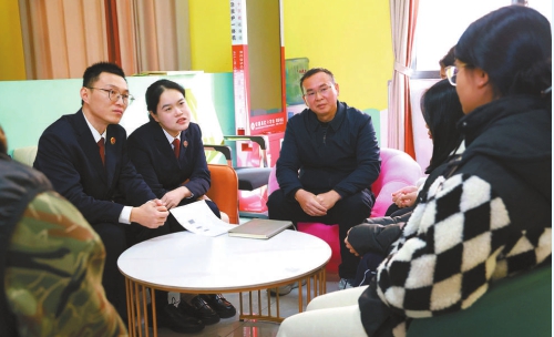 江西省安福县检察院在各乡镇学校设置“福芽邮箱”,收集对未成年人的家庭暴力、虐待、校园欺凌等违法犯罪线索,助力孩子健康成长。图为该院干警来到安福县平都镇第二中学,对“福芽邮箱”提供的线索进行详细了解。