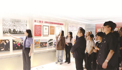 2025年5月,最高检与北京大学法学院联合举办“走近检察实务 共育法治栋梁”活动。图为学生参观最高检检察史展览馆。