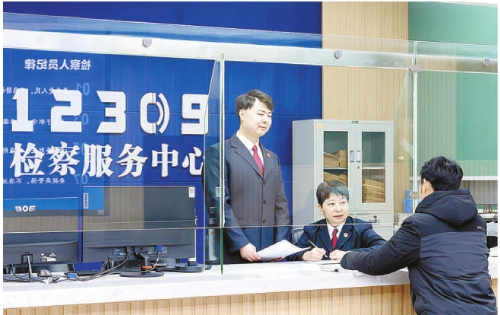2026年1月19日,湖北省武汉市检察院检察官在接访窗口现场指导青年干警如何接待来访群众。