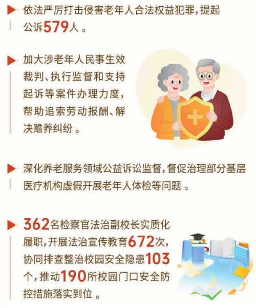 聚焦“一老一小”,天津市检察机关筑牢权益保护屏障。依法严厉打击侵害老年人合法权益犯罪,提起公诉579人。加大涉老年人民事检察案件办理力度,帮助追索劳动报酬、解决赡养纠纷。深化养老服务领域公益诉讼监督,督促治理部分基层医疗机构虚假开展老年人体检等问题。强化未成年人权益保护和犯罪防治,“零容忍”惩治侵害未成年人犯罪。推动健全未成年人罪错分级干预矫治机制,协同加强专门学校建设和专门教育工作,362名检察官法治副校长实质化履职。