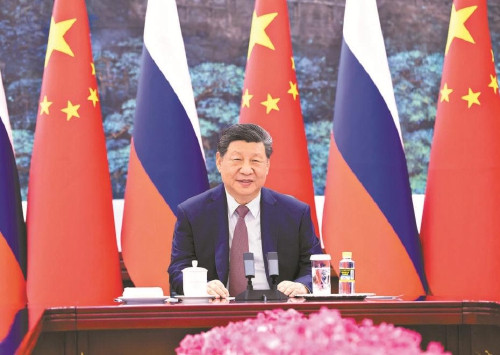 习近平表示,开年以来,国际形势愈发动荡。作为负责任大国和联合国安理会常任理事国,中俄两国有义务推动国际社会坚守公平正义,坚定捍卫二战胜利成果,坚决维护以联合国为核心的国际体系和国际法基本准则,携手维护全球战略稳定。