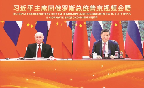 2月4日下午,国家主席习近平在北京人民大会堂同俄罗斯总统普京举行视频会晤。 新华社记者刘彬摄