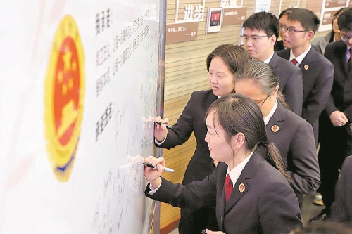 2026年1月,浙江省湖州市吴兴区检察院组织干警在“廉洁从检承诺墙”上郑重签名。