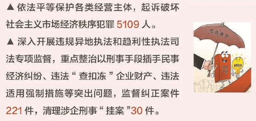 2025年,辽宁省检察机关认真贯彻习近平法治思想和习近平总书记对辽宁的重要讲话和重要指示精神,全面履行法律监督职责,深化知识产权检察综合履职,为法治化营商环境建设提供检察保障。依法平等保护各类经营主体,起诉破坏社会主义市场经济秩序犯罪5109人。深入开展违规异地执法和趋利性执法司法专项监督,重点整治以刑事手段插手民事经济纠纷、违法“查扣冻”企业财产、违法适用强制措施等突出问题,监督纠正案件221件,清理涉企刑事“挂案”30件。加大对高新技术、新兴产业、历史文化等领域知识产权保护力度,起诉相关犯罪411人,办理民事、行政和公益诉讼检察监督案件71件。